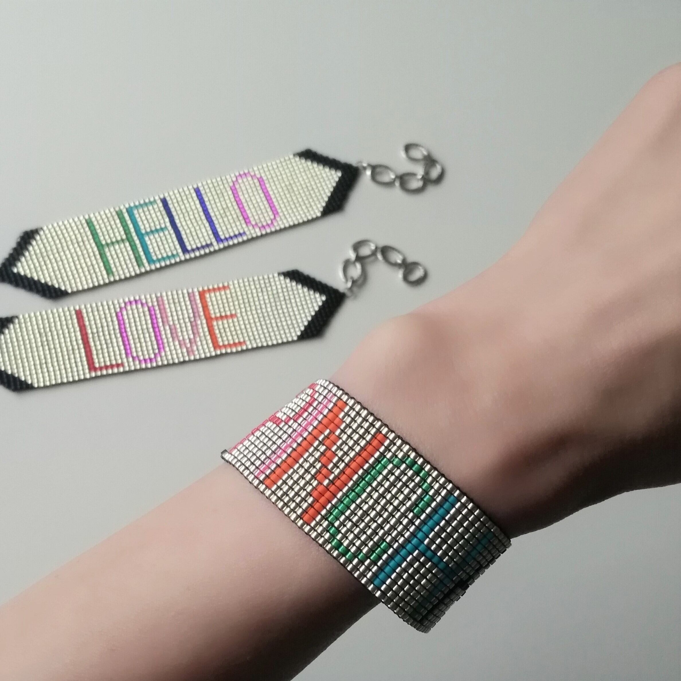 ガラスビーズを糸で丁寧に織り上げています。