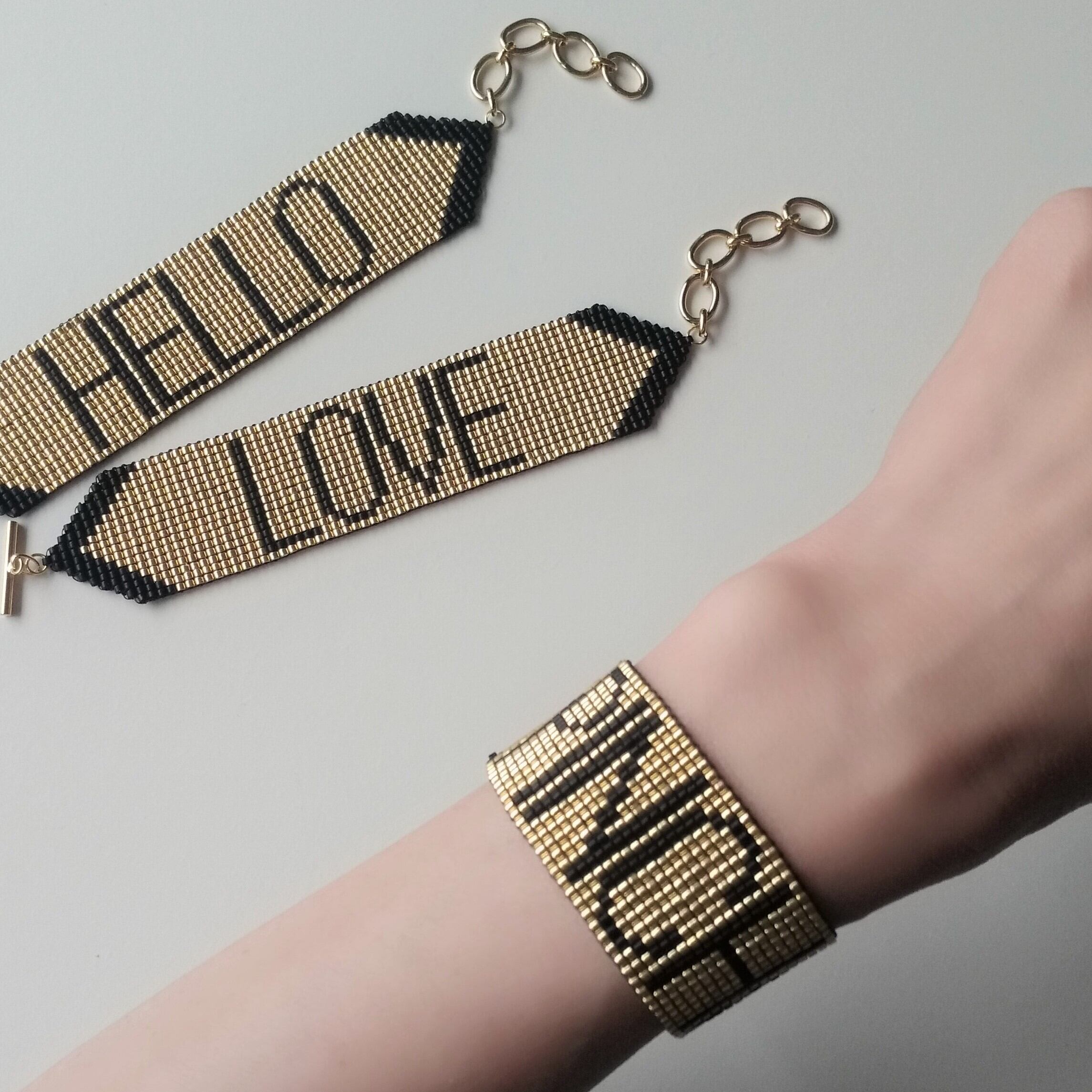 ガラスビーズを糸で丁寧に織り上げています。